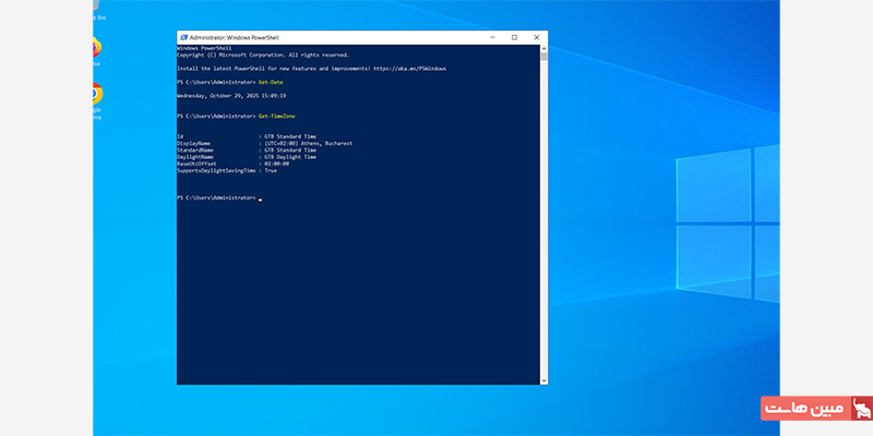 ویندوز پاورشل یکی از ابزارهای قدرتمند برای مدیریت سیستم است که علاوه بر انجام تسک‌های پیچیده مدیریتی و تعمیر سیستم فایل‌ها، برای تنظیم تاریخ و ساعت در ویندوز سرور نیز قابل استفاده می‌باشد.