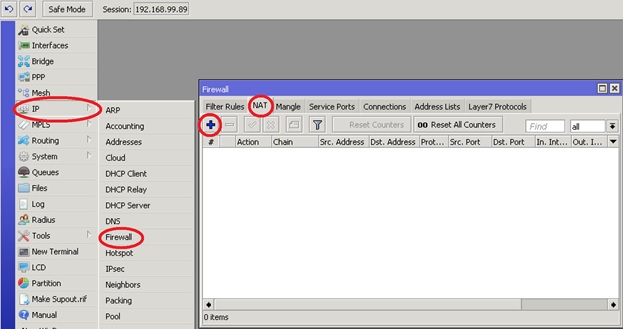 از بخش سمت چپ گزینه IP را انتخاب کنید – سپس از منوی بازشده گزینه Firewall را انتخاب کنید. از Firewall به تب Nat بروید.