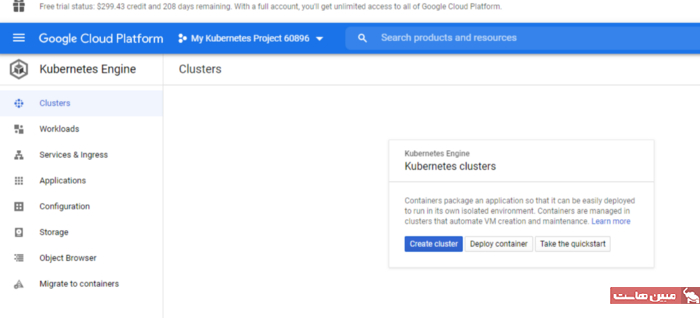 Kubernetes engine که در زیر قسمت Compute section است را انتخاب کنید.